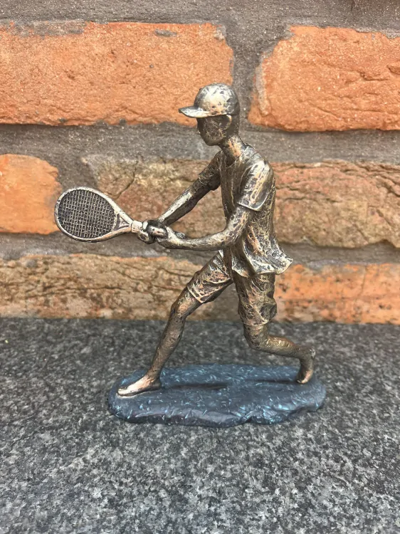 Dynamická soška zachycující okamžik plný energie a soustředění. Postava tenisty v elegantním pohybu vyzařuje sílu, odhodlání i vášeň pro hru. Precizně zpracované detaily a jemná patina dodávají celé kompozici moderní, přitom nadčasový vzhled, který skvěle doplní každý interiér.